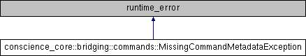 | conscience_core::bridging::commands::MissingCommandMetadataException::MissingCommandMetadataException | ( | const string & | missingCommandId, |