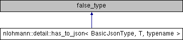 Inheritance diagram for nlohmann::detail::has_to_json< BasicJsonType, T, typename >: