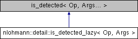 Inheritance diagram for nlohmann::detail::is_detected_lazy< Op, Args >: